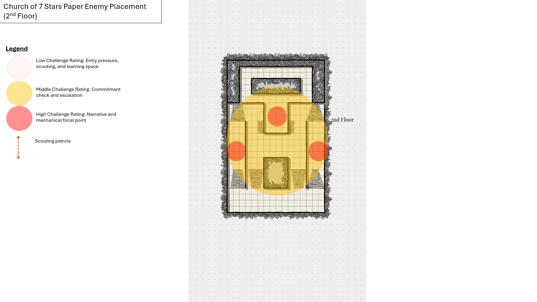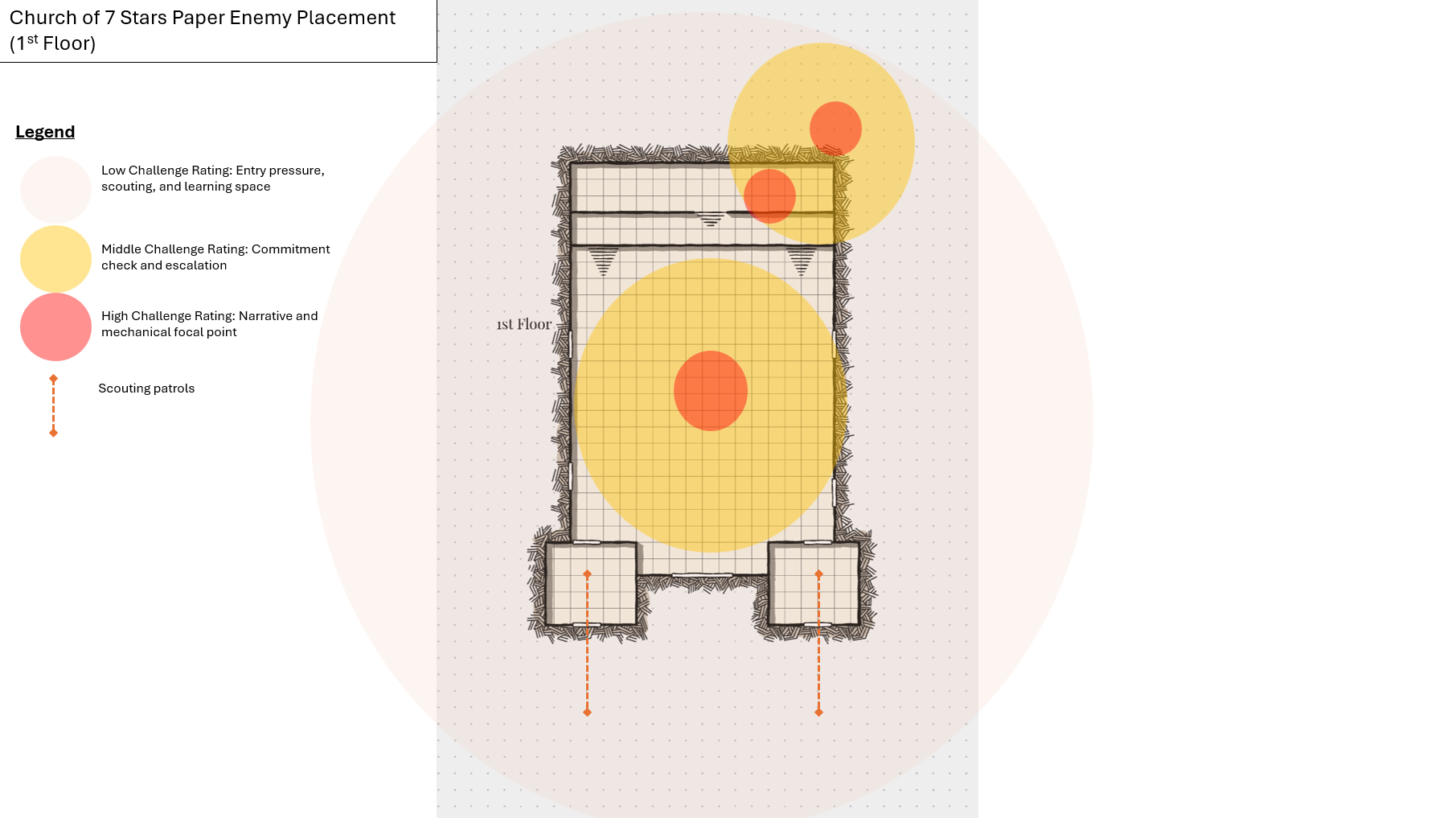Working closely with environment artists, narrative designers, and NPC teams, I developed three named mob encounters designed to leverage verticality and layered spaces to promote varied player interactions and tactical decision-making. Each encounter was positioned to reinforce natural movement through the space, using elevation changes, sightlines, and architectural landmarks to guide players intuitively.